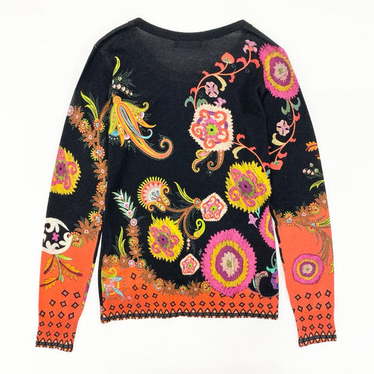 14j10 ETRO エトロ イタリア製 クルーネック ニットセーター 長袖 ロングスリーブ 花柄 鳥 蝶々 レディース 女性用 172-15641-9291 ブラック シルクカシミヤu02t