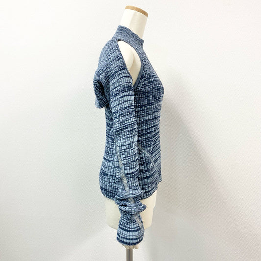 54h27 《未使用》 STRIAE BY McQ ALEXANDER McQUEEN マックキュー アレキサンダーマックイーン 変形 リブニット セーター トップス 薄手 667790 サイズL ブルー コットン レディースu02t