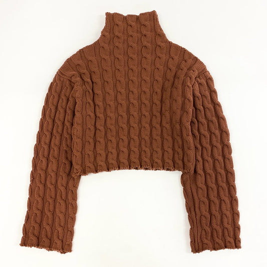 6h29 BALENCIAGA バレンシアガ ハイネックケーブルニット 長袖ニット タートルネック クロップド丈 Mサイズ ブラウン レディース 女性用k02i