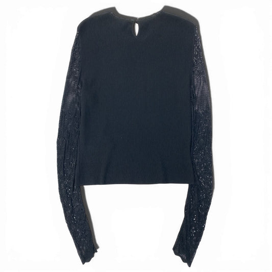 72a28【美品】Alexander McQUEEN アレキサンダーマックイーン 長袖リブニットセーター 袖切替レース トップス Lサイズ ブラック レディース 女性用u02t