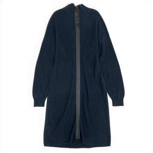 37L23 HERMES エルメス リブニットワンピース ハイネック ロングスリーブ ハーフボタン イタリア製 40サイズ ネイビー系 レディース 女性用o07t