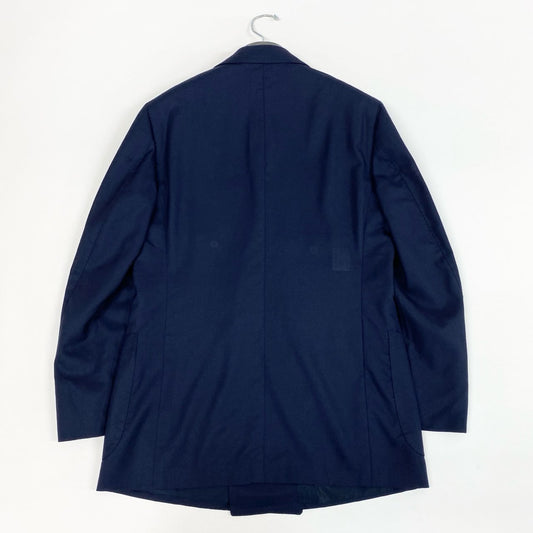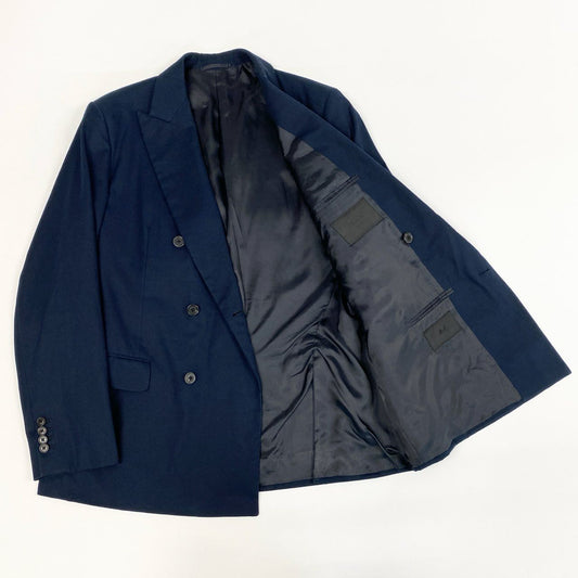 46j3 PRADA プラダ イタリア製 ダブルプレスト ピークドラペル テーラードジャケット ブレザー UGA010 50 Lサイズ相当 ネイビー コットン カシミヤ メンズo07t
