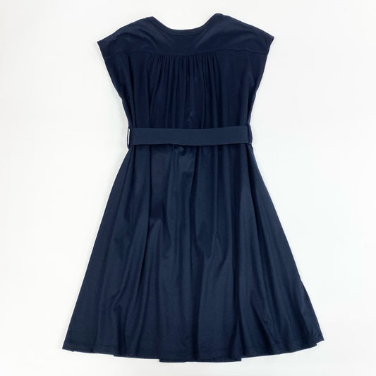 79j9 BLUE LABEL CRESTBRIDGE ブルーレーベル クレストブリッジ ノーカラーワンピース シャツワンピース 半袖 伸縮ストレッチ◎ レディース 女性用 38 ネイビーu02t
