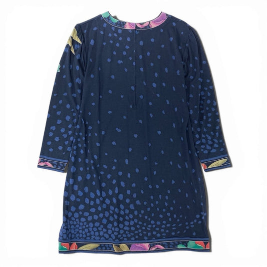 6l25 LEONARD レオナール 長袖チュニック チュニックワンピース クルーネック 美しい花柄プリント Lサイズ ネイビー レディースu02t