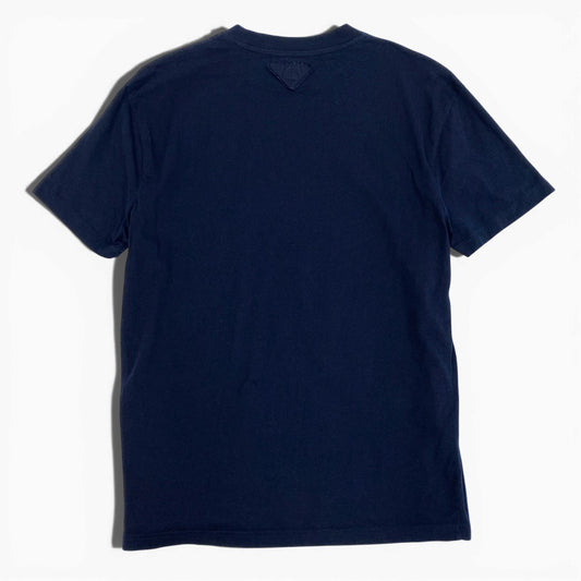 46a30 PRADA プラダ 半袖Tシャツ クルーネックTシャツ 三角ロゴ トップス Mサイズ ネイビー コットン100% レディース 女性用o07t