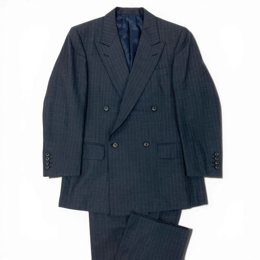 16a27 BURBERRY LONDON バーバリーロンドン スーツセットアップ テーラードジャケット スラックスパンツ ストライプ リネン混 94-84-165 AB4 ネイビー メンズ 男性用o07t