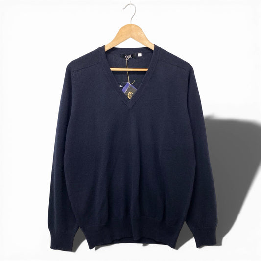 85a28 【新品保管品】GOBI ゴビ カシミヤVネックニットセーター カシミア トップス モンゴル製 Lサイズ ネイビー カシミヤ100% メンズu02t
