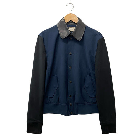 62a28 Acne アクネ オールド ブルゾンジャケット 襟レザー アウター 48サイズ ネイビー ポリエステル100% 牛革 メンズu02t
