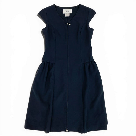 81a23 Rene ルネ ノースリーブワンピース キャップスリーブ パールジップ タックフレアスカート 36 ネイビー レディース 女性用u02t