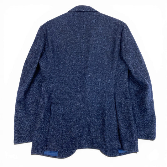 50a19 Stile Latino スティレラティーノ テーラードジャケット ツイード アンコンジャケット ヘリンボーン ウールブレンド〇 メンズ 紳士服 46 ネイビーu02t