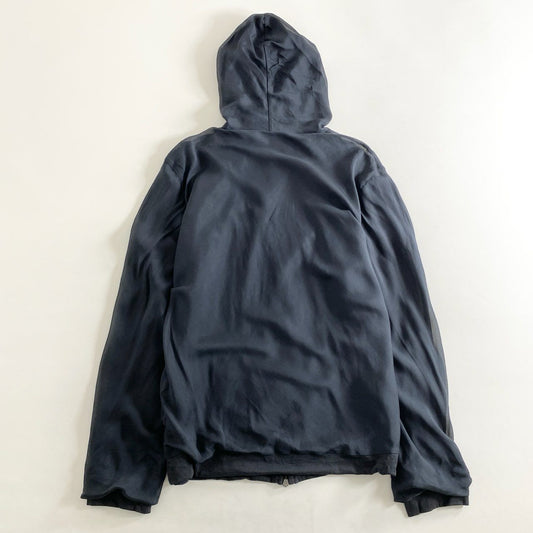 25h9 LANVIN ランバン シルク100% ジップアップパーカー XL ネイビー トップス 羽織 薄手