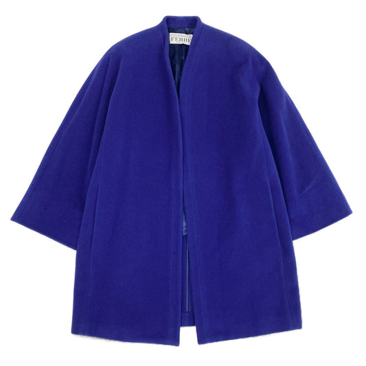 77L16 Vintage HANAE MORI PARIS ハナエモリ カシミヤ混 大判カラー ロングコート アウター 38 パープル レディース フランス製u02t