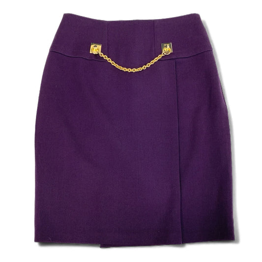 64L15 Vintage CELINE セリーヌ ヴィンテージ オールド ゴールドチェーン 台形スカート フレアスカート 38 パープル ウール レディースu02t