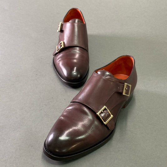 1f16 《美品》 Santoni サントーニ ダブルモンク ビジネスシューズ 37 1/2 ブラウン レザー 本革 オフィス 箱付き
