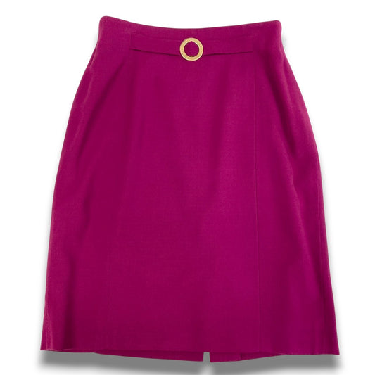 43b20 Vintage CELINE セリーヌ サークルロゴ ゴールド金具 タイトスカート 膝丈 46 ピンク ウール フランス製 大きいサイズu02t