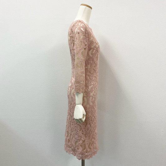 12i26 《美品》 TADASHI SHOJI タダシショージ 定番 コードレース 七分袖ワンピース ドレスワンピース ひざ丈 ALX1812MXJ サイズ2 ピンク レディース 定価118,000円u02t