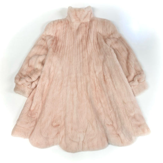 35k2《極希少》Pellice Moda ペリーチェモーダ 染めミンク ロングコート 98cm 裾ウェーブデザイン ピンク 最高級本毛皮 MINK FUR レアカラーt18r