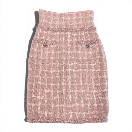 60a14 CHANEL シャネル 2014 collection P50302 グリポア ツイードトリムスカート ダブルジップ サイズ34 ピンク レディースta1