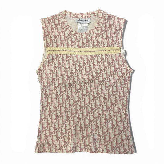 76a28 Christian Dior クリスチャンディオール トロッター ノースリーブカットソー トップス フランス製 4P16155030 36 ピンク コットン レディースo07t
