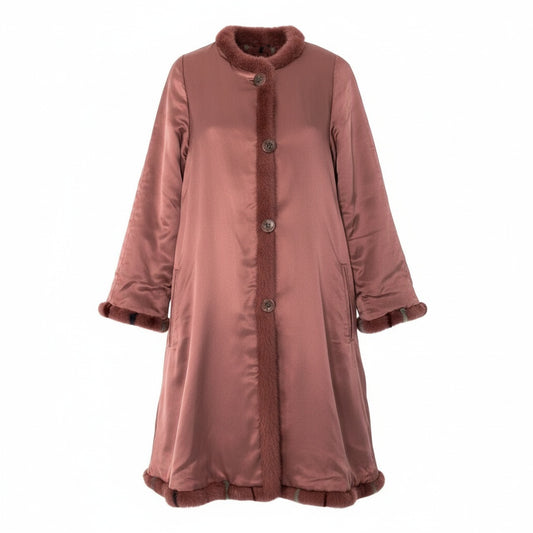 34a16 染めミンク ミックスファー リバーシブルコート サイズF ピンク 本毛皮 Dyed Mink Fur Coatt18r