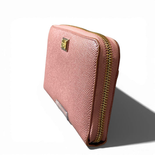 a5 DOLCE&GABBANA ドルチェアンドガッバーナ ラウンドファスナー 長財布 レザー ロゴプレート ピンク レディースk02i