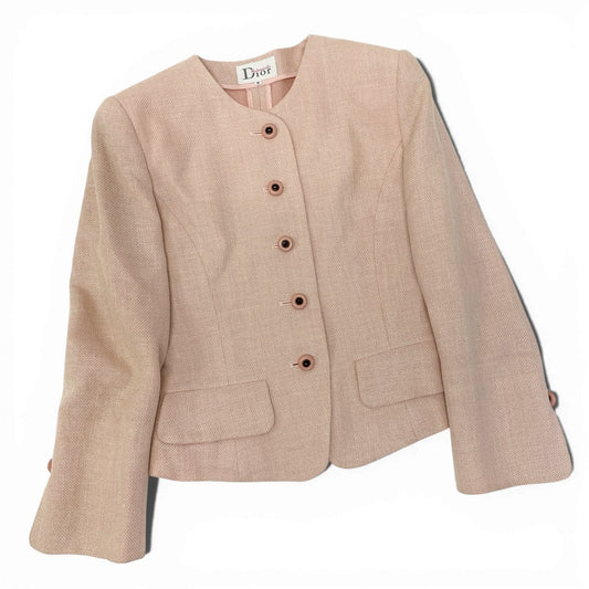 76a28 Vintage Dior Mademoiselle ディオール マドモアゼル クロップドジャケット スカート セットアップ 装飾ボタン M ピンク レディースu02t