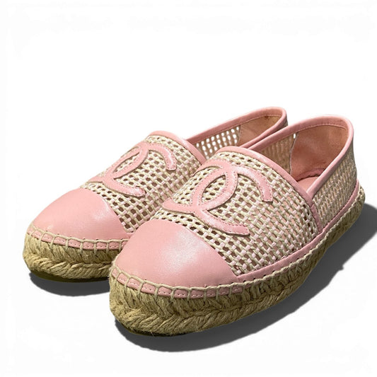 2a23 《美品》 CHANEL シャネル ココマーク エスパドリーユ メッシュ スリッポン G37302 サイズ35 ピンク レザー フラットシューズ 箱付きt18r