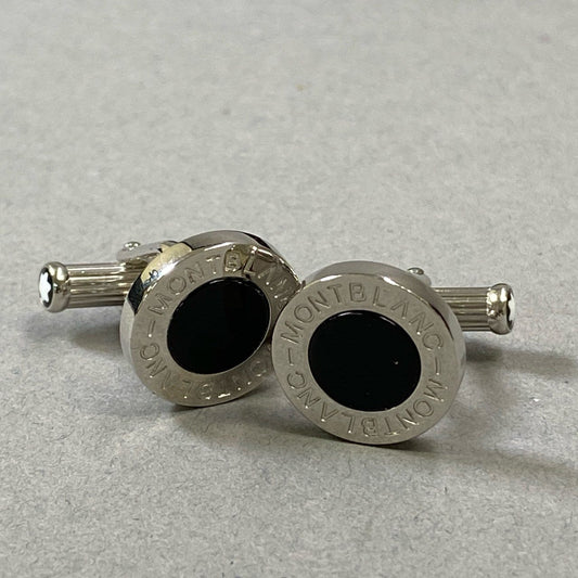 j6《美品》 MONTBLANC モンブラン ブラックオニキス カフスボタン シルバー ブラック カフリンクス ビジネス スーツ 箱付きt18r