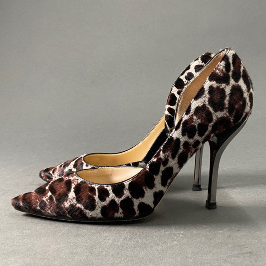 1a28 JIMMY CHOO ジミーチュウ WILLIS レオパード ハラコ ヒールパンプス シューズ ポインテッドトゥ イタリア製 36 1/2 ブラウン系 MADE IN ITALY