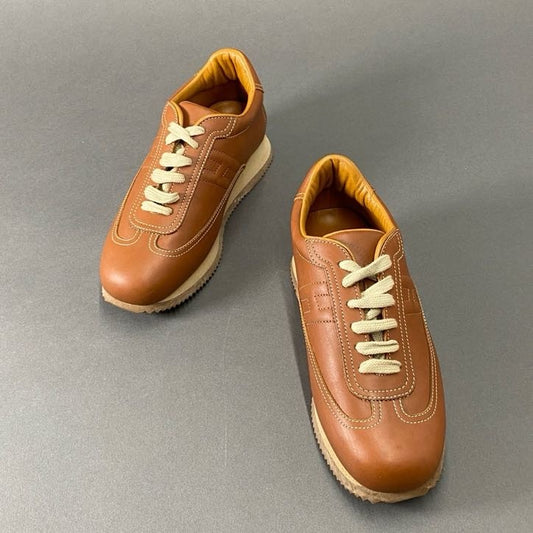 1h14 HERMES エルメス Quick Leather Sneakers クイック レザー スニーカー 37 1/2 ブラウン シューズ イタリア製