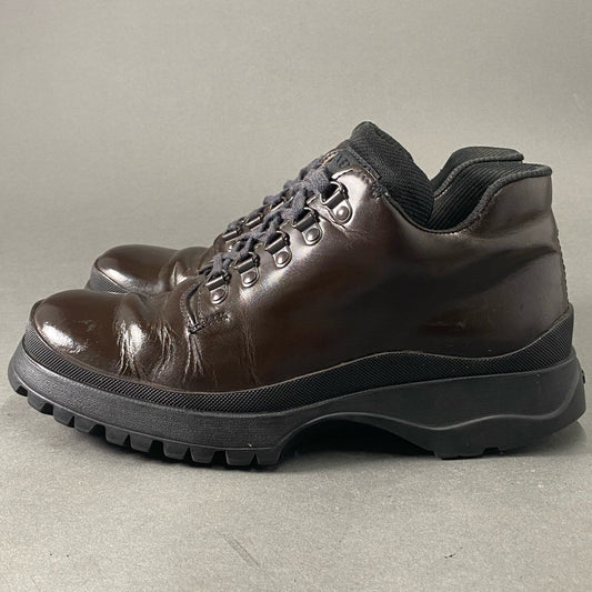 3d1 PRADA プラダ イタリア製 トレッキングシューズ ブーツ レースアップ ビブラムソール 6 1/2 ブラウン レザー MADE IN ITALY