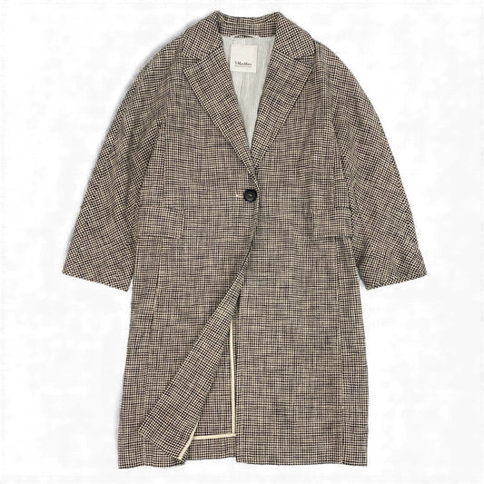 52L9 ’S MaxMara エスマックスマーラ ロングジャケット ロングコート ブレザーコート ハウンドトゥース アウター 40サイズ ブラック アイボリー レディースk02i