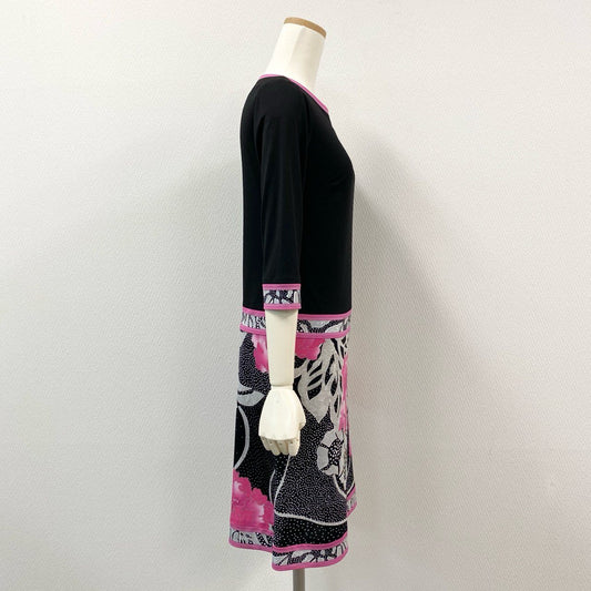 32i9【美品】 LEONARD レオナール 七分袖ワンピース カンカン素材 花柄ワンピース 薄手 レディース 女性用 0330327 34 ブラック ピンクu02t