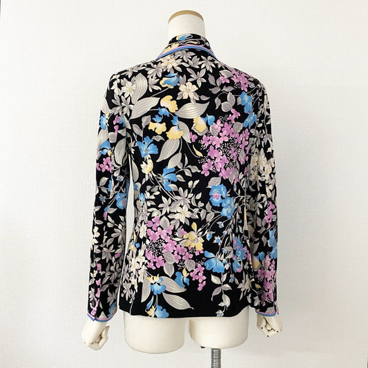 6h10 LEONARD レオナール フラワープリント テーラードジャケット 38 ブラック 美しい花柄プリント 日本製 ブレザー レディース 女性用