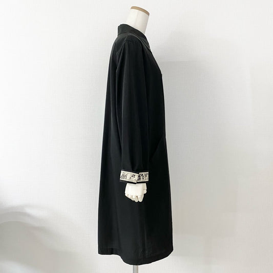 53h10 《美品》 LEONARD レオナール 日本製 ステンカラーコート シルク コットン ロングコート アウター スプリングコート 11R L相当 ブラック