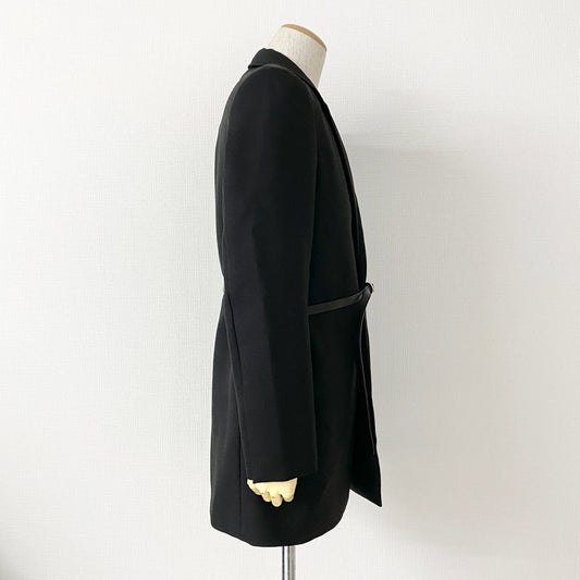 48h13 JIL SANDER ジルサンダー 2021 テーラード ロングコート 特注レザージレ付き レザーベスト レイヤード JSMT135101 MT201000 サイズ44 ブラック メンズ