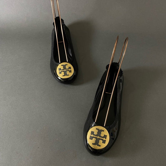 1h4 《美品》 TORY BURCH トリーバーチ エンブレム フラットシューズ パンプス ロゴ金具 36 ブラック