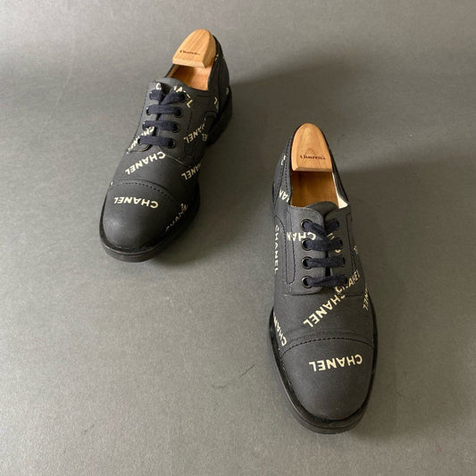 1h4 CHANEL シャネル キャンバス ロゴプリント レースアップシューズ サイズ36 1/2 ブラック キャンバス レディース