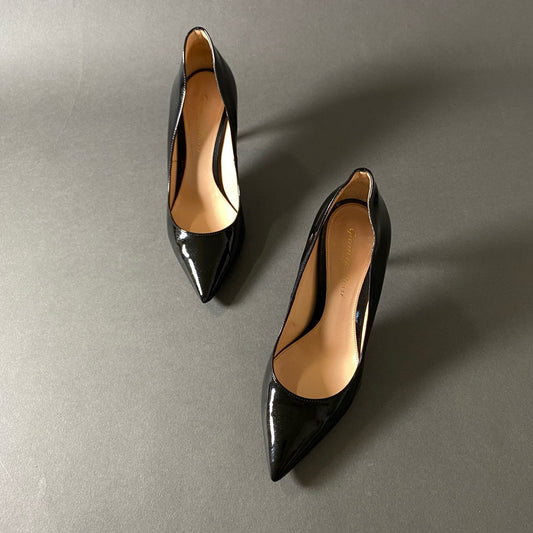 2h6 Gianvito Rossi ジャンヴィトロッシ ポインテッドトゥ パンプス サイズ35 ブラック パテントレザー レディース 女性用 靴 シューズ