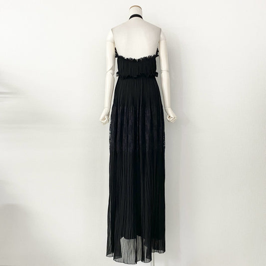 69g2 ERMANNO SCERVINO エルマンノシェルビーノ レース切替 プリーツドレス フリル キャミワンピース サイズS ブラック レディース 女性用 パーティー ドレス