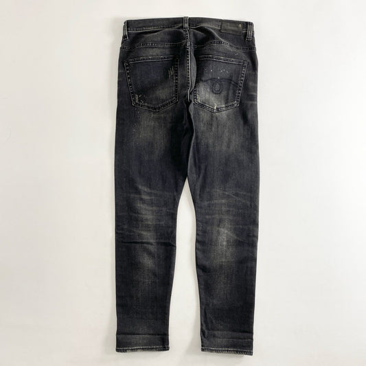69g2 【イタリア製】R13 アールサーティーン ダメージ ペンキ加工 伸縮ストレッチ デニムパンツ ジョグジーンズ サイズ31 ブラック メンズ