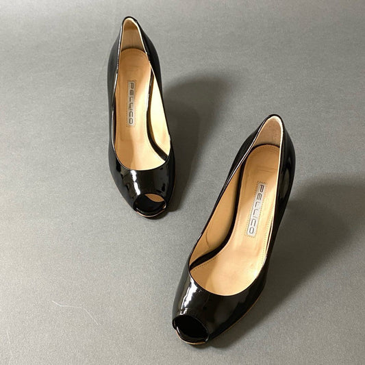 6f30 PELLICO ペリーコ オープントゥ パテントレザー パンプス 34 ブラック シューズ サンダル イタリア製
