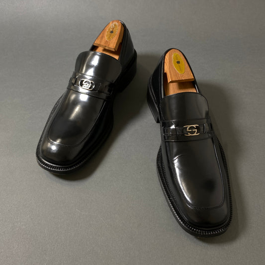 2f26 《美品》 GUCCI グッチ インターロッキングG ビットローファー 41 1/2E ブラック レザー ビジネスシューズ イタリア製