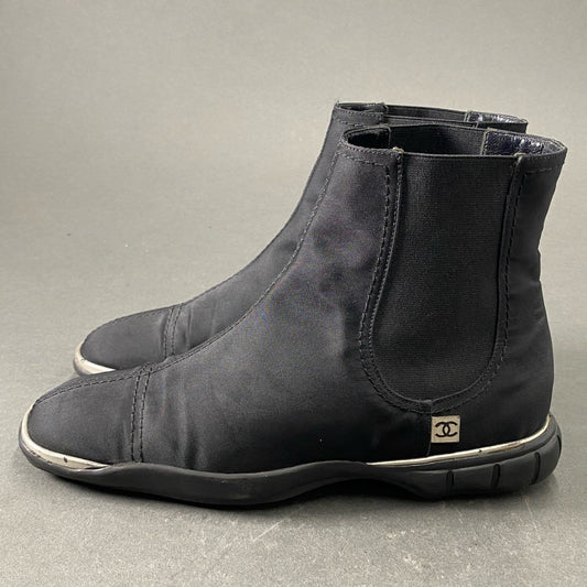 10f13 CHANEL SPORT シャネルスポーツ ヴィンテージ サイドゴアブーツ 23cm相当 ブラック ナイロン系 レディース