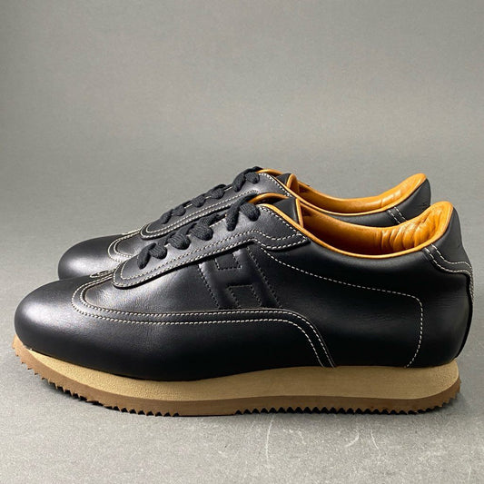 9f13 《美品》 HERMES エルメス クイック レザースニーカー 40 1/2 ブラック leather イタリア製 シューズ