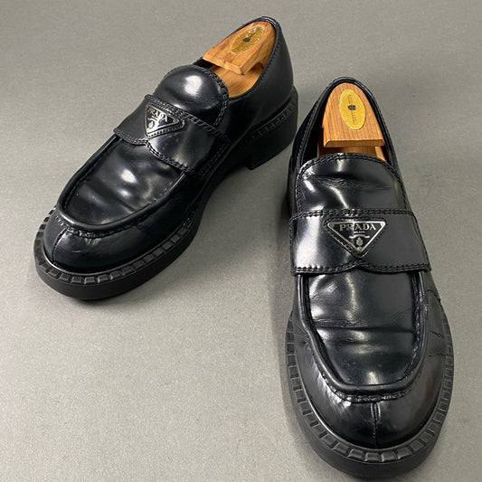 1f13 PRADA プラダ Chocolate Brushed チョコレートブラッシュ ローファー 7 ブラック 三角ロゴプレート シューズ