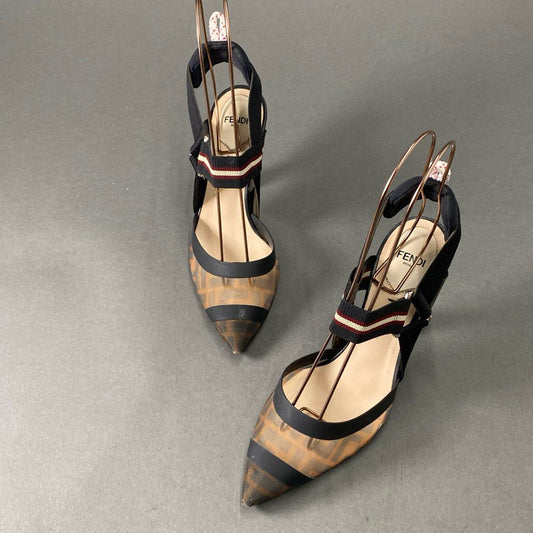 1f13 FENDI フェンディ コリブリ ズッカ柄 ミュールサンダル 36 1/2 ブラック ヒール シューズ イタリア製