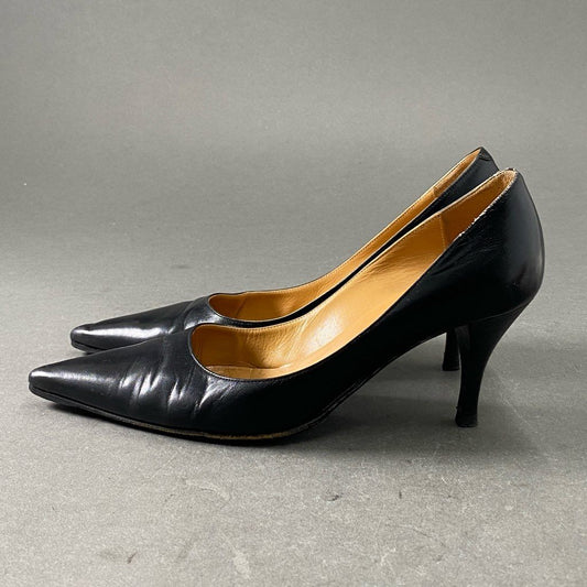 2f13 HERMES エルメス レザーヒールパンプス 35 1/2 ブラック Leather シューズ ビジネス オフィス 冠婚葬祭 入卒式