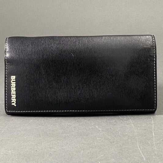 3j22 BURBERRY バーバリー ロングウォレット 長財布 札入れ レザー 本革 ロゴ ラバー メンズ レディース ユニセックス ブラック 服飾小物
