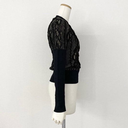 65j29 フランス製 Christian Dior クリスチャンディオール クルーネック レース ニット セーター サイズL ブラック レディース 女性用